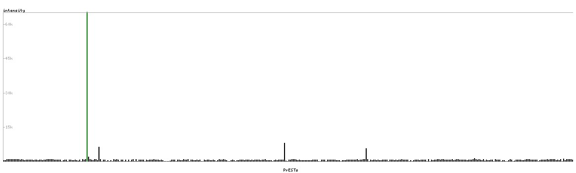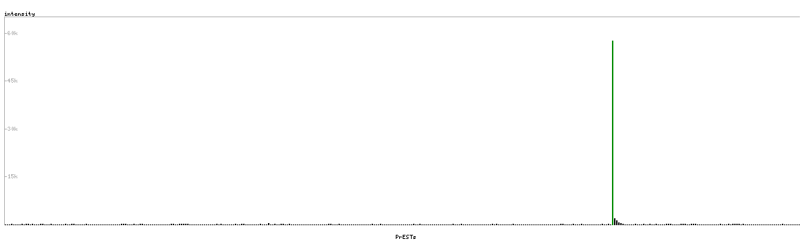 At the top of the view, the position of the antigen (identified by the corresponding HPA identifier) is shown as a green bar. A yellow triangle on the bar indicates a <100% sequence identity to the protein target.