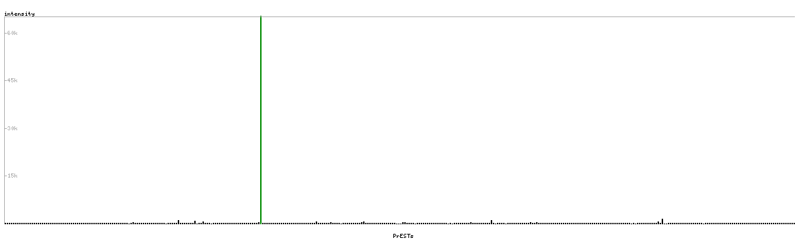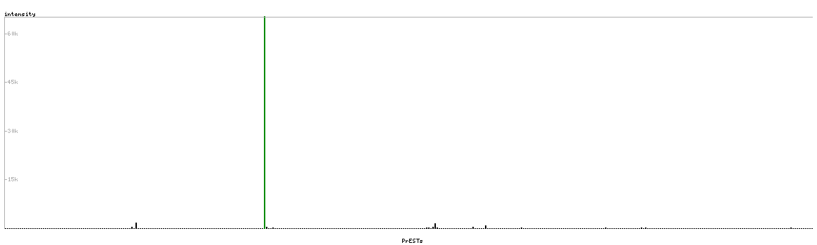 At the top of the view, the position of the antigen (identified by the corresponding HPA identifier) is shown as a green bar. A yellow triangle on the bar indicates a <100% sequence identity to the protein target.