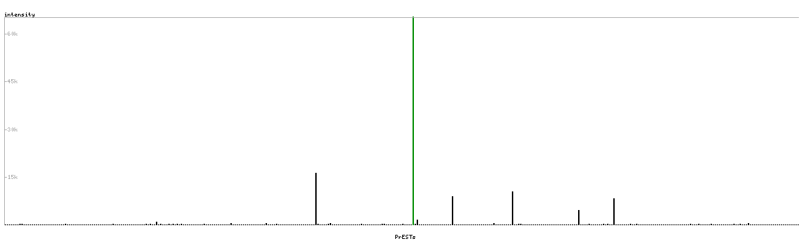 At the top of the view, the position of the antigen (identified by the corresponding HPA identifier) is shown as a green bar. A yellow triangle on the bar indicates a <100% sequence identity to the protein target.