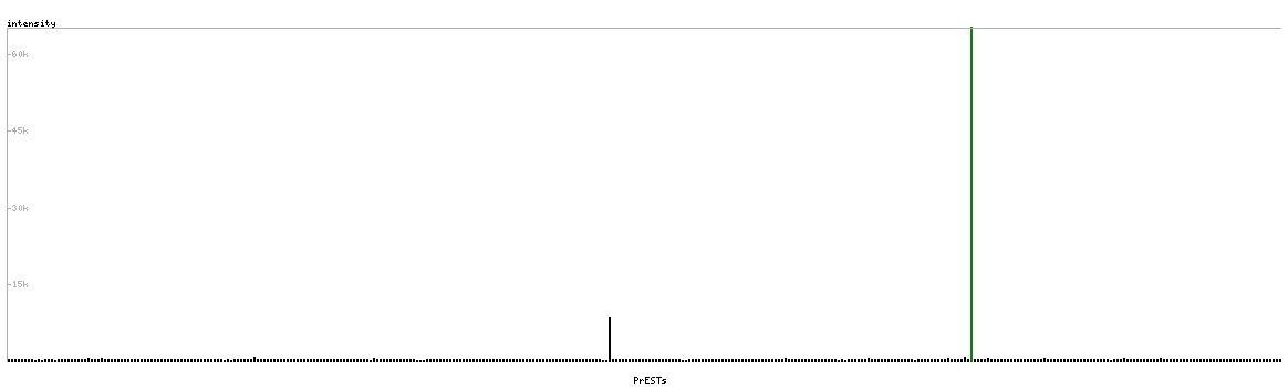 At the top of the view, the position of the antigen (identified by the corresponding HPA identifier) is shown as a green bar. A yellow triangle on the bar indicates a <100% sequence identity to the protein target.