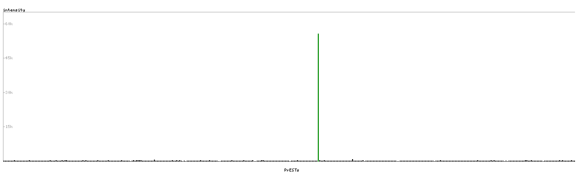 At the top of the view, the position of the antigen (identified by the corresponding HPA identifier) is shown as a green bar. A yellow triangle on the bar indicates a <100% sequence identity to the protein target.