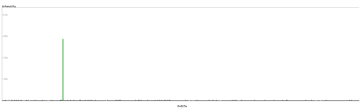 At the top of the view, the position of the antigen (identified by the corresponding HPA identifier) is shown as a green bar. A yellow triangle on the bar indicates a <100% sequence identity to the protein target.