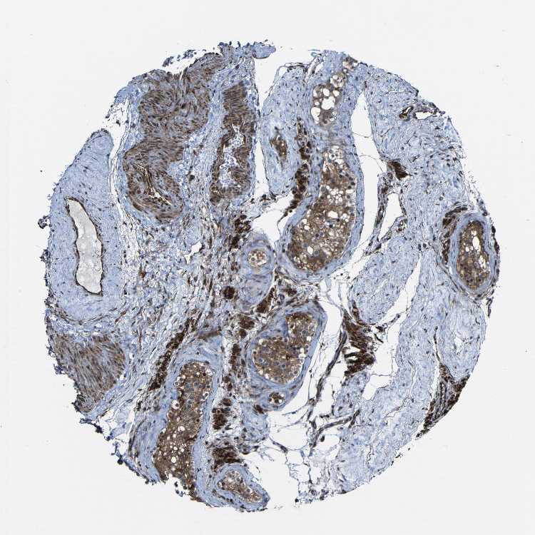 Antibody staining in the annotated cell types in the current human tissue is reported as not detected, low, medium, or high. This score is based on the staining intensity and fraction of stained cells.