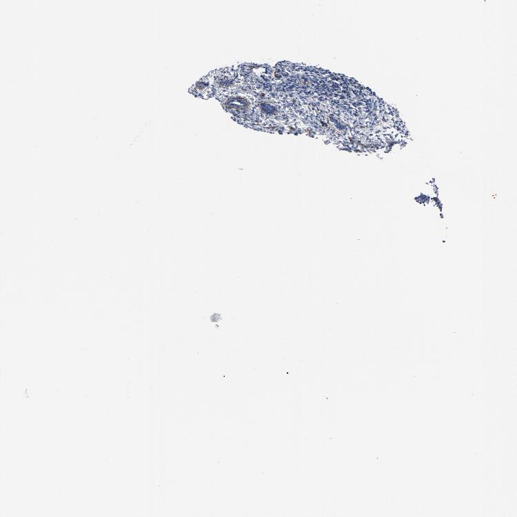 Antibody staining in the annotated cell types in the current human tissue is reported as not detected, low, medium, or high. This score is based on the staining intensity and fraction of stained cells.