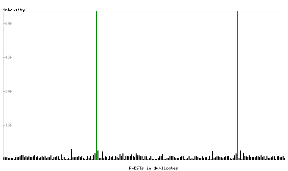 At the top of the view, the position of the antigen (identified by the corresponding HPA identifier) is shown as a green bar. A yellow triangle on the bar indicates a <100% sequence identity to the protein target.