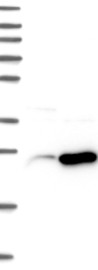 A Western blot analysis is performed on a panel of human tissues and cell lines to evaluate antibody specificity. For antibodies with unreliable result a revalidation using an over-expression lysate is performed.