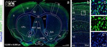Release of HPA14 and the Human Protein Atlas blogFocus in version 14 has been to improve validation of the antibodies used to map the human proteome and the inclusion of a new atlas; the Mouse Brain Atlas created by the Fluorescence Tissue Profiling facility at Science for Life Laboratory (SciLifeLab) in Stockholm. Many of the mouse proteins have extensive homology with the human counterpart and this forms the basis for using the mouse brain as a model for the corresponding human brain to explore the expression and distribution of proteins in the various regions and cells of the brain. The new Mouse Brain Atlas, introduced in this version, includes additional brain regions and has additional information on cellular and sub cellular distribution of proteins in the brain. The atlas is interactive, with the possibility of zooming in from a full brain section to single cells in a specific region of the brain.